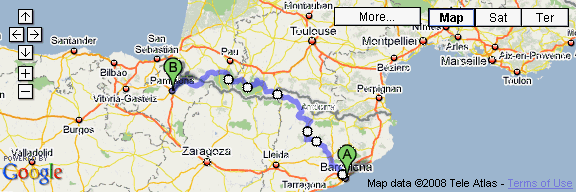 By clicking above you will get a popup map on which you will be able to track how far I've come so far and where I've been. This map doesn't cover the first stretch from Barcelona upto the Pyrenees, but it will show the most exciting part of the trip, the "Parque Nationales des Pyrénées". Expect me 'on this map' starting around June 16-18th.